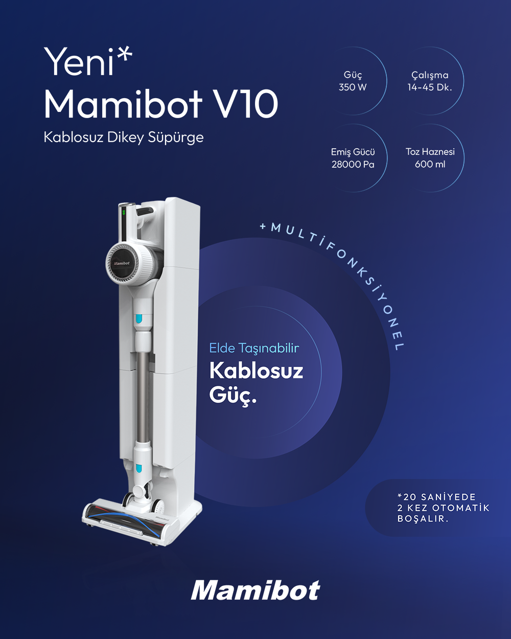 Mamibot V10 Pro Otomatik Boşlatma Sistemli, Led B...